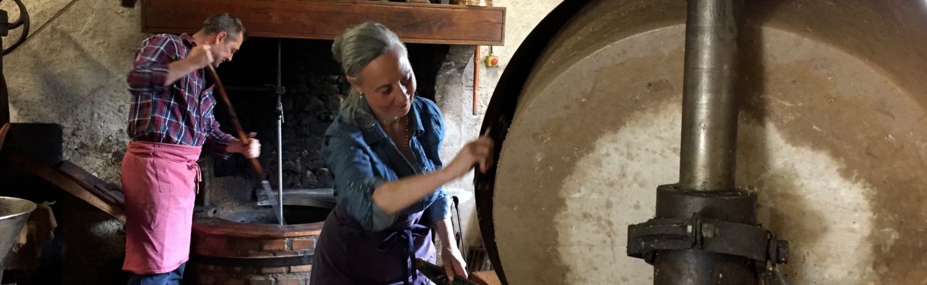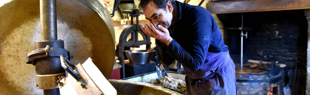 Le procédé de fabrication artisanal: broyage, torréfaction douce et extraction entièrement mécanique ainsi que la même recette, président, toujours aujourd'hui, aux huiles de noix et de noisettes proposées par leur entreprise Moulin de Pesselières.